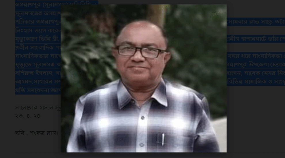 জগন্নাথপুর প্রেসক্লাবের সভাপতি শংকর রায় আর নেই