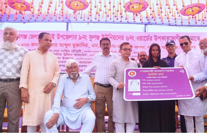 আজ মঙ্গলবার (১০ মার্চ) সুনামগঞ্জের দিরাই উপজেলার ৯ নম্বর কুলঞ্জ ইউনিয়নের ৬ নম্বর ওয়ার্ডে বীর মুক্তিযোদ্ধা এম. এ. রউফ জুনিয়র স্কুল প্রাঙ্গণে উপকারভোগীদের মাঝে ফ্যামিলি কার্ড বিতরণ অনুষ্ঠানে প্রধান অতিথির বক্তব্যে তিনি এসব কথা বলেন।