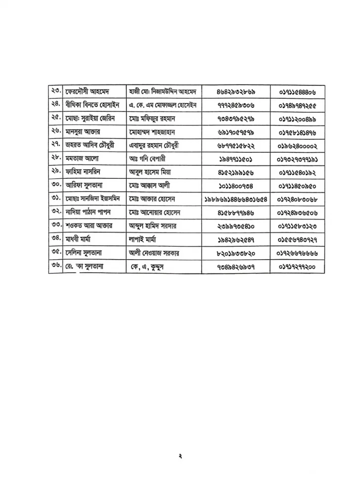 ৬. মোছাম্মত ফরিদা ইয়াসমিন